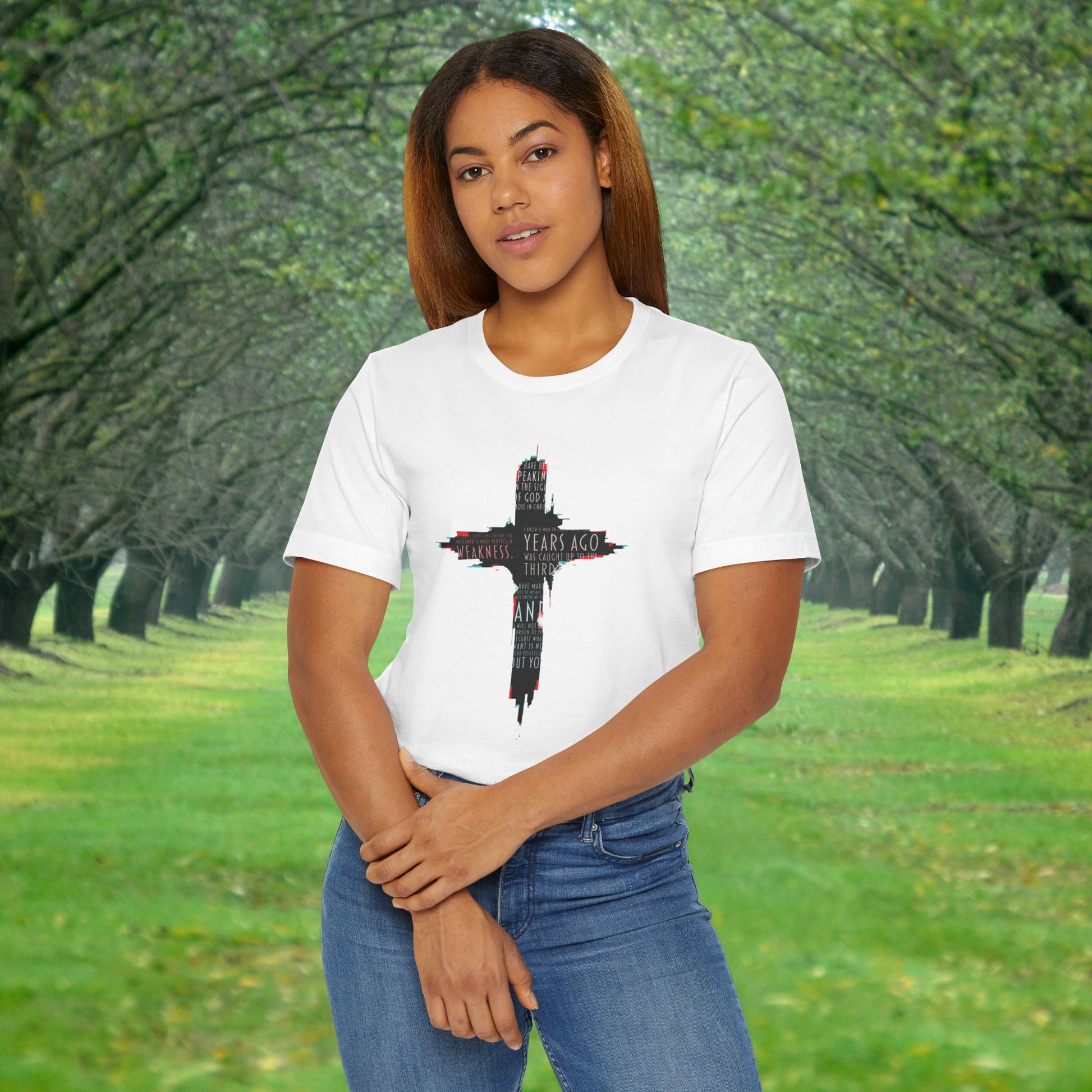 Available in black, white, heather gray – red glitch accents shine brightest on light backgroundsStand out. Spark conversations. Wear your redeemed faith unapologetically.#GlitchedGrace #CyberFaith #EdgyChristian #BibleVerseTee #2026ChristianStreetwear