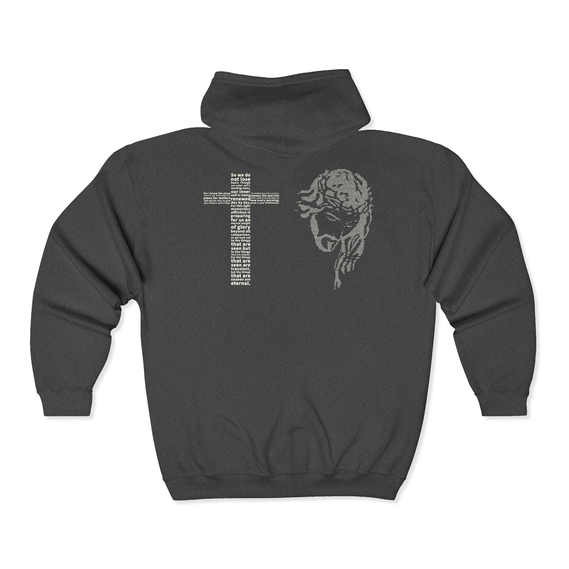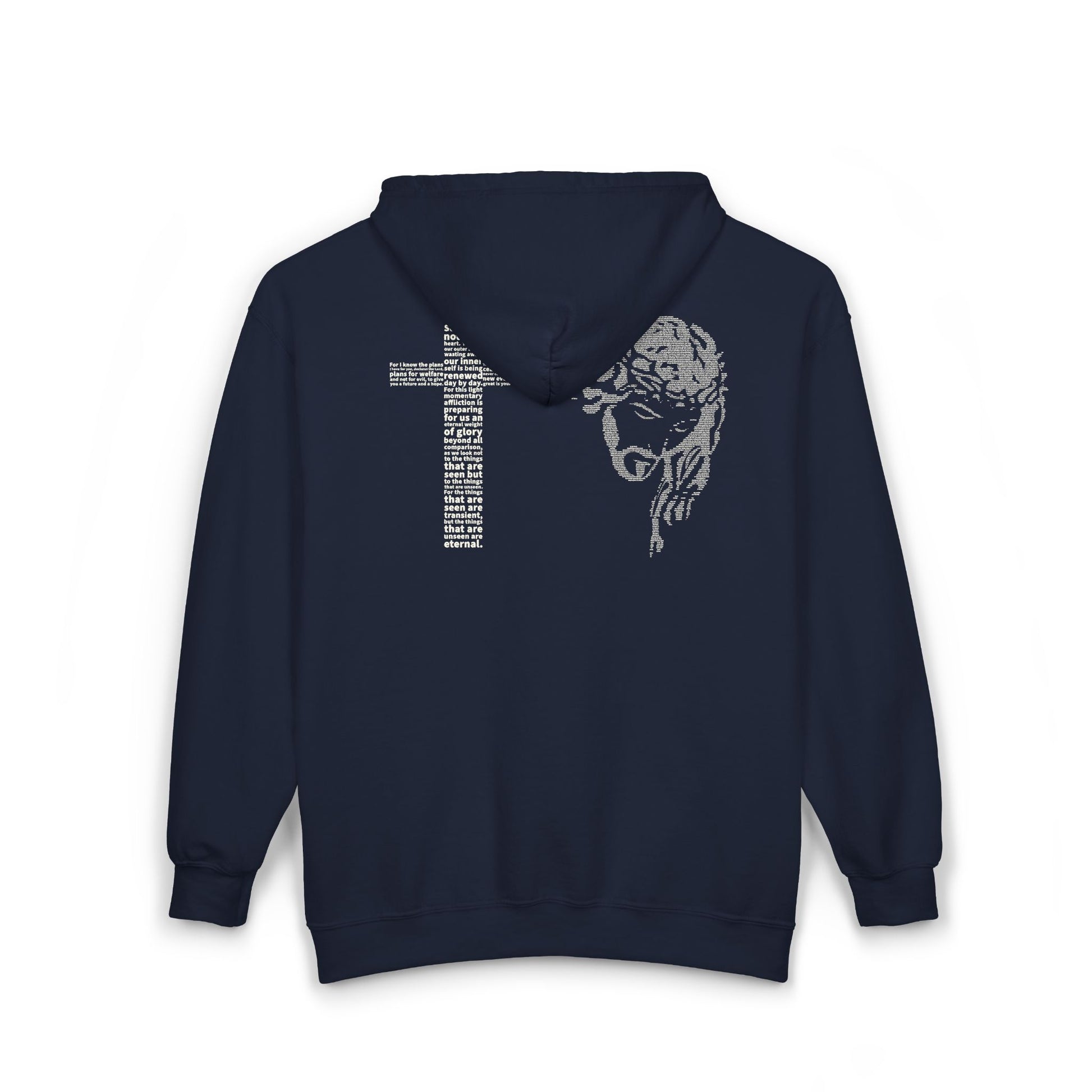 Jesus Face & Cross Hoodie, Unisex Bible Verse Graphic Hoodie, Faith-Based Apparel, Christian Streetwear, Spiritual Gift