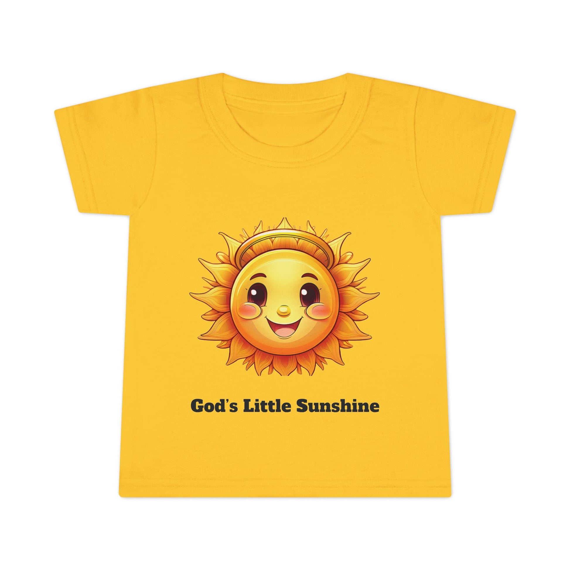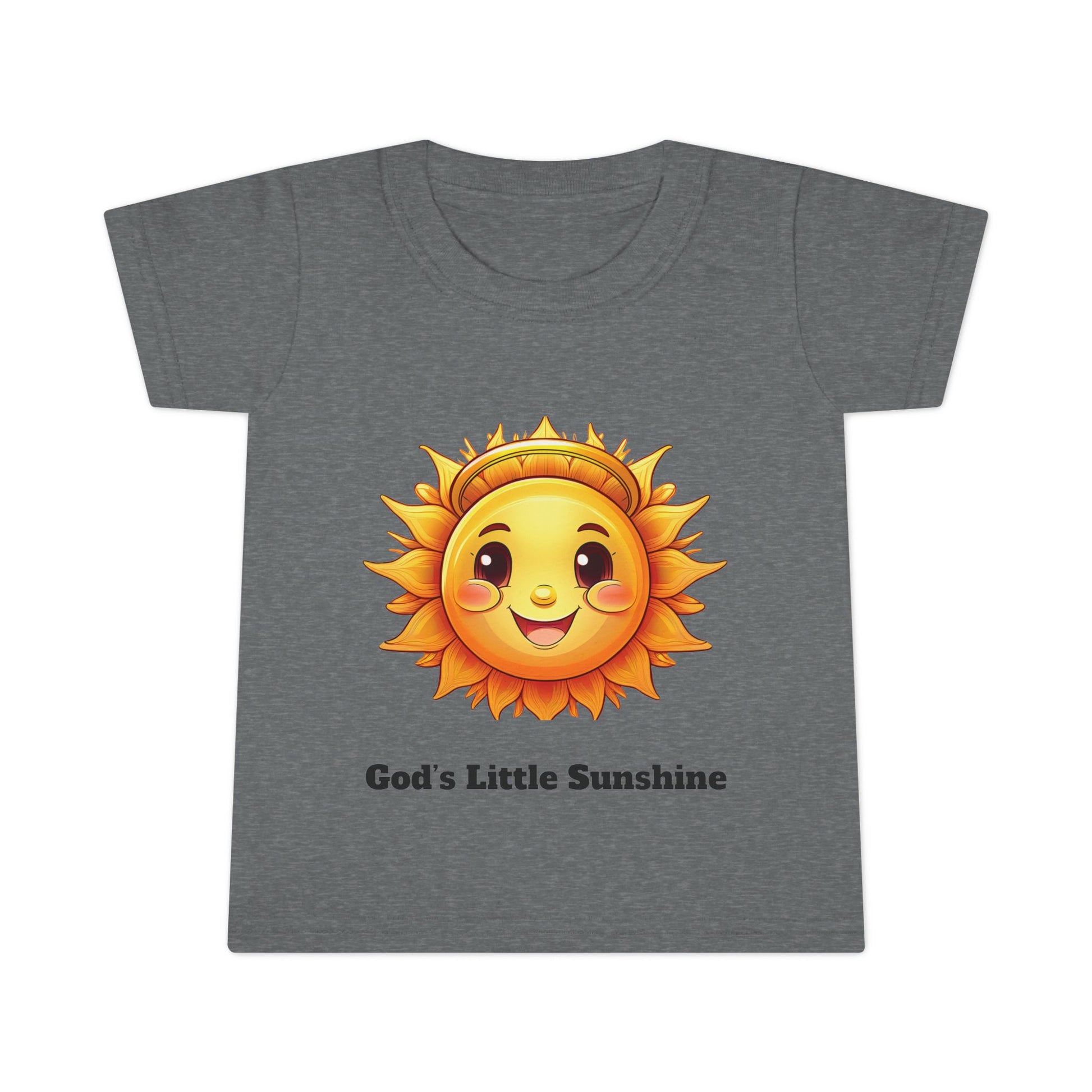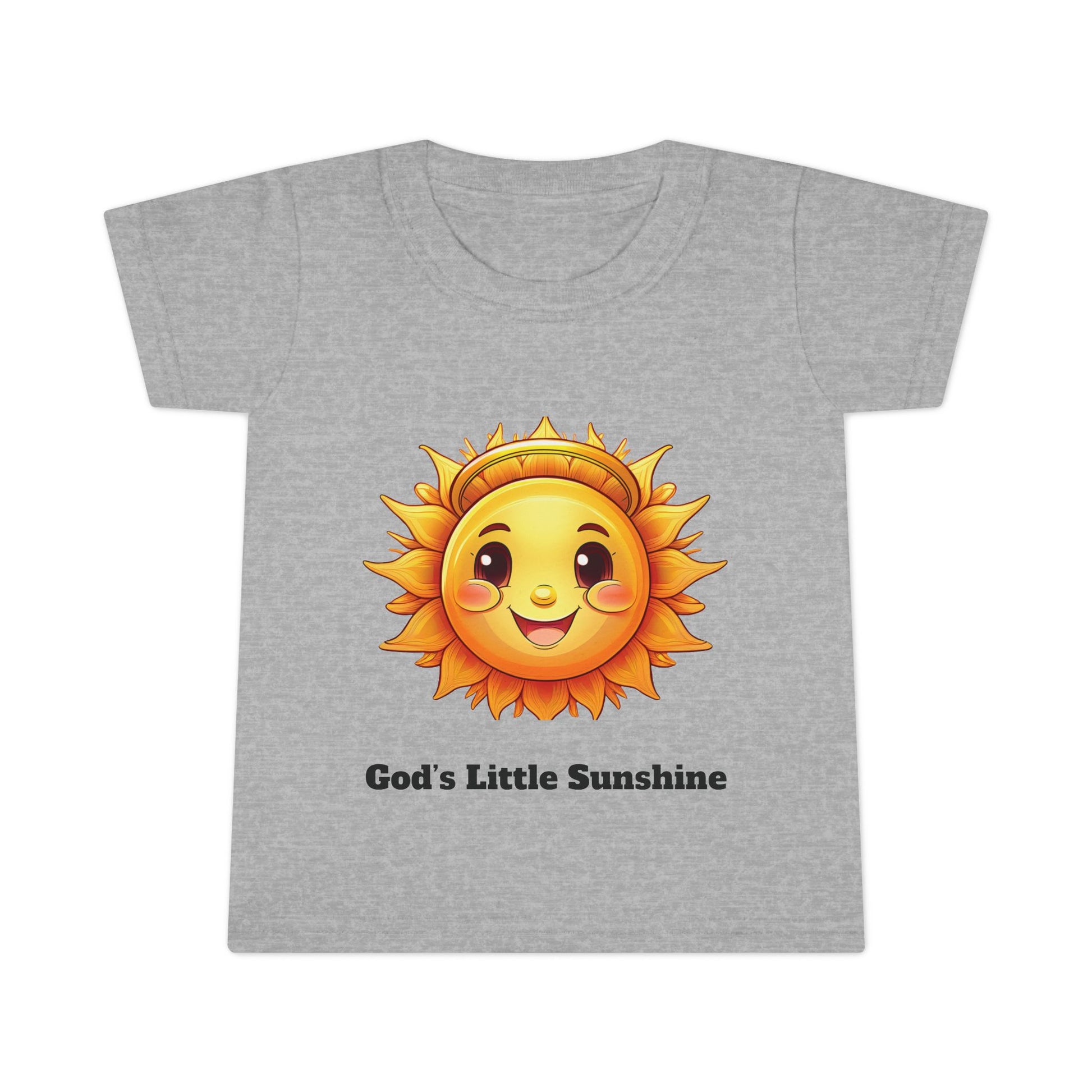 Brighten up your little one's wardrobe with this delightful toddler t-shirt featuring an adorable sun design and the uplifting phrase, "God's Little Sunshine." Perfect for playdates, family gatherings, or just lounging at home, this shirt radiates warmth and happiness. The classic fit ensures comfort and easy movement for your active toddler. Ideal for sunny days, birthdays, or special occasions like Easter and summer picnics, this shirt also makes a great gift for birthdays or baby showers. Handmade with love, it’s perfect for parents who want to share a message of joy and positivity with their children. Product features - Made from soft, preshrunk ringspun cotton for all-day comfort. - Designed with side seams for a better fit and structure. - Shoulder and neck seams are taped to prevent stretching. - Durable with double needle sleeve and bottom hems. - Lightweight fabric, making it perfect for warm weather. Care instructions - Machine wash: cold (max 30C or 90F) - Non-chlorine: bleach as needed - Tumble dry: low heat - Iron, steam or dry: low heat - Do not dry clean